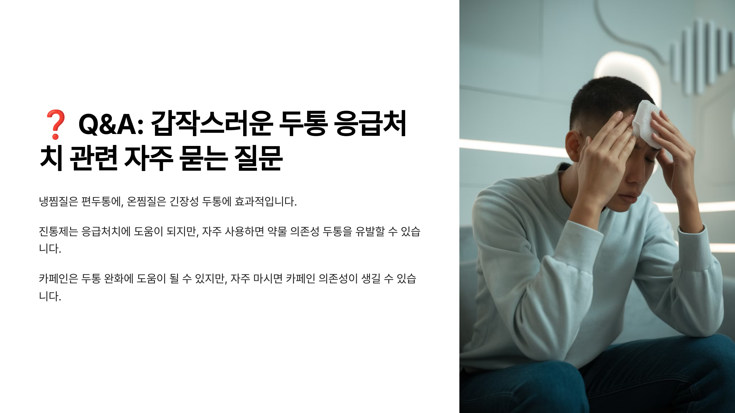 ❓ Q&A: 갑작스러운 두통 응급처치 관련 자주 묻는 질문