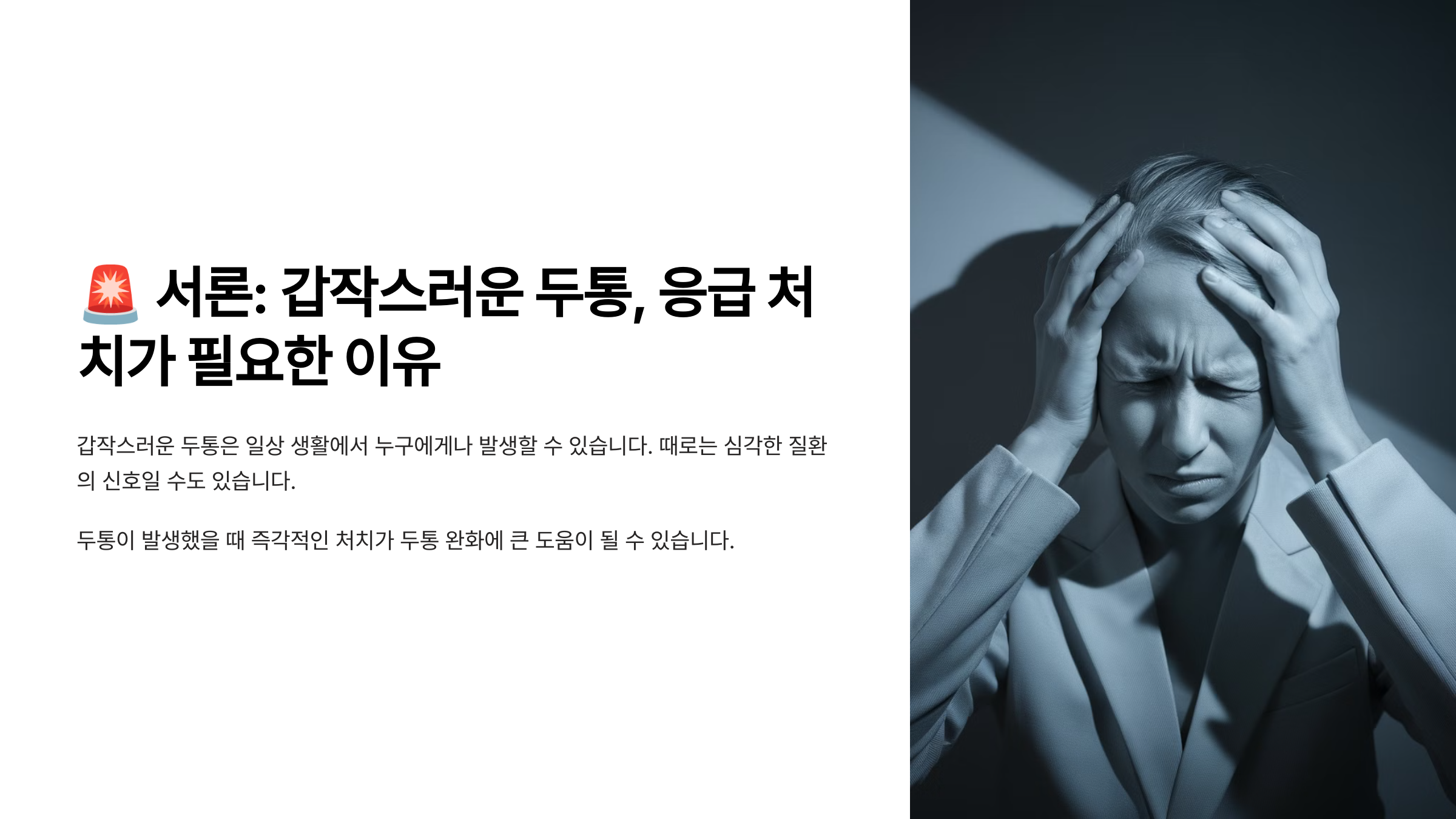 🚨 서론: 갑작스러운 두통, 응급 처치가 필요한 이유