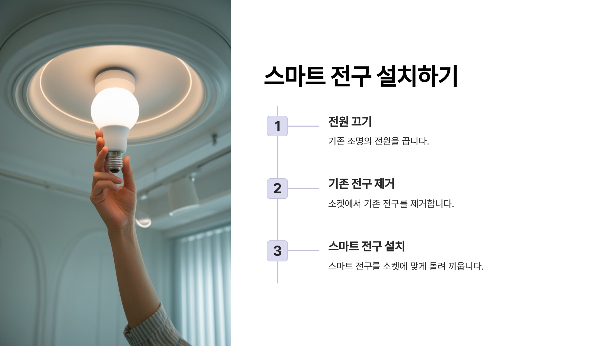 - 스마트 전구는 일반 전구와 동일하게 설치됩니다.
