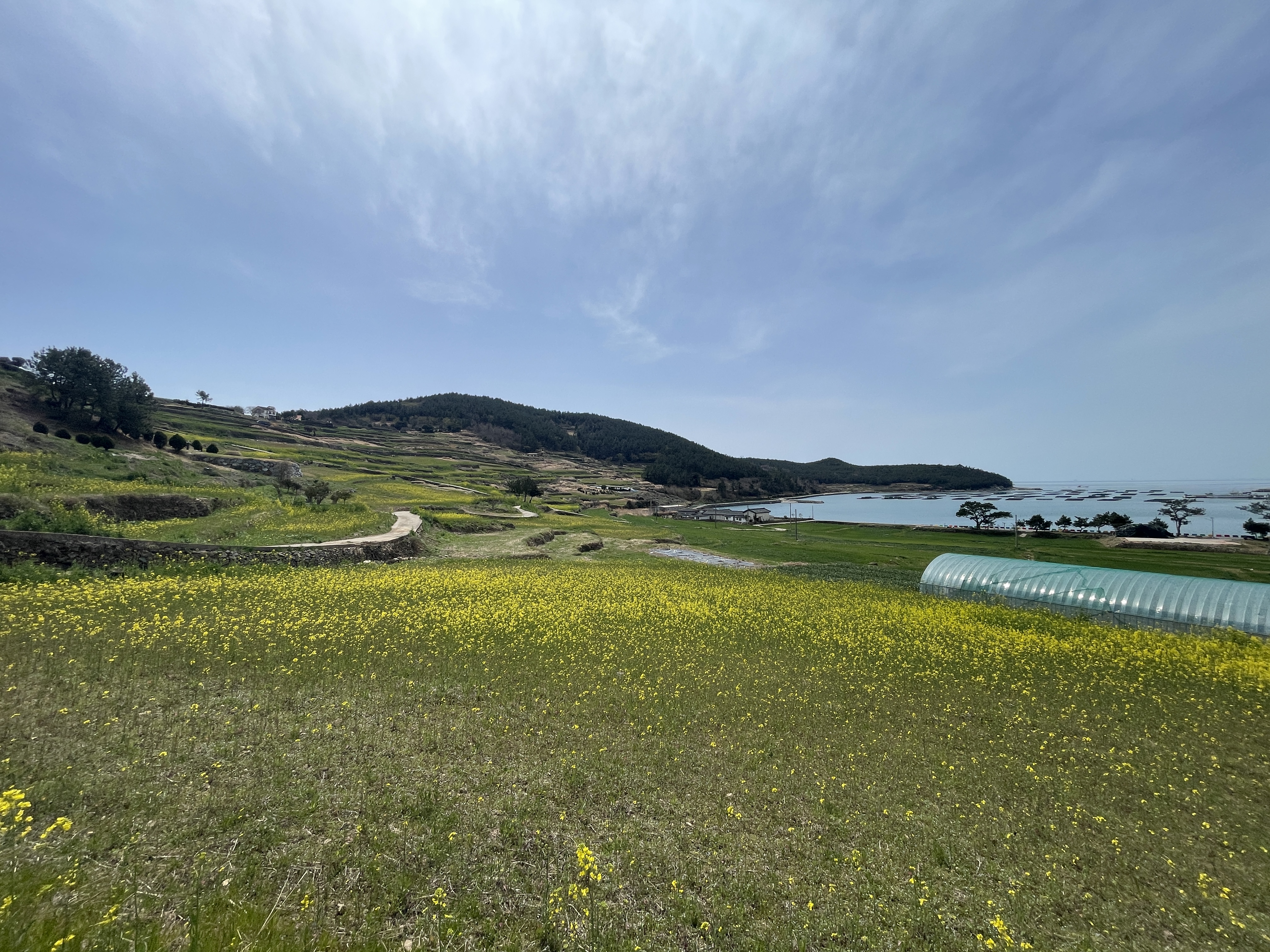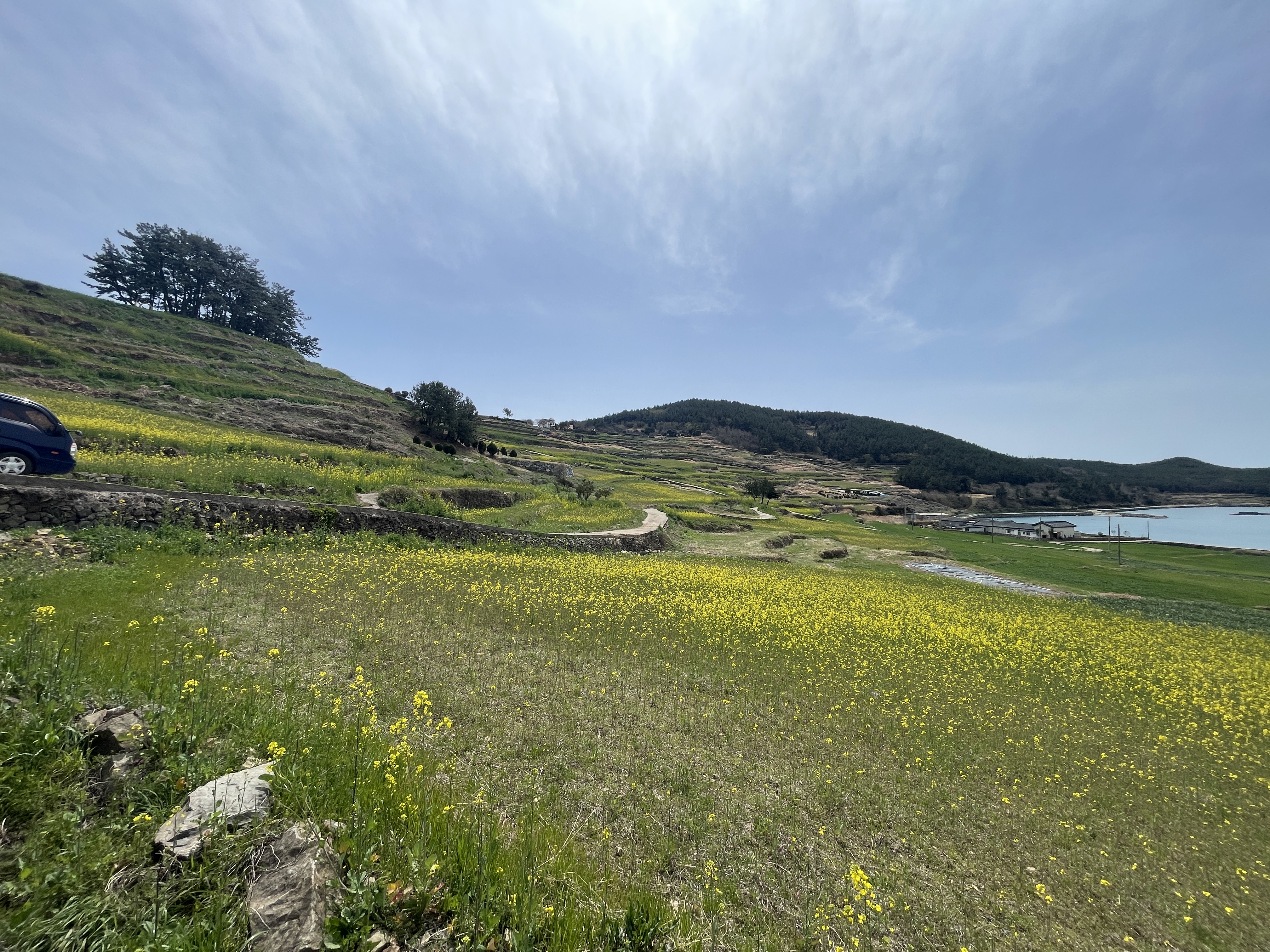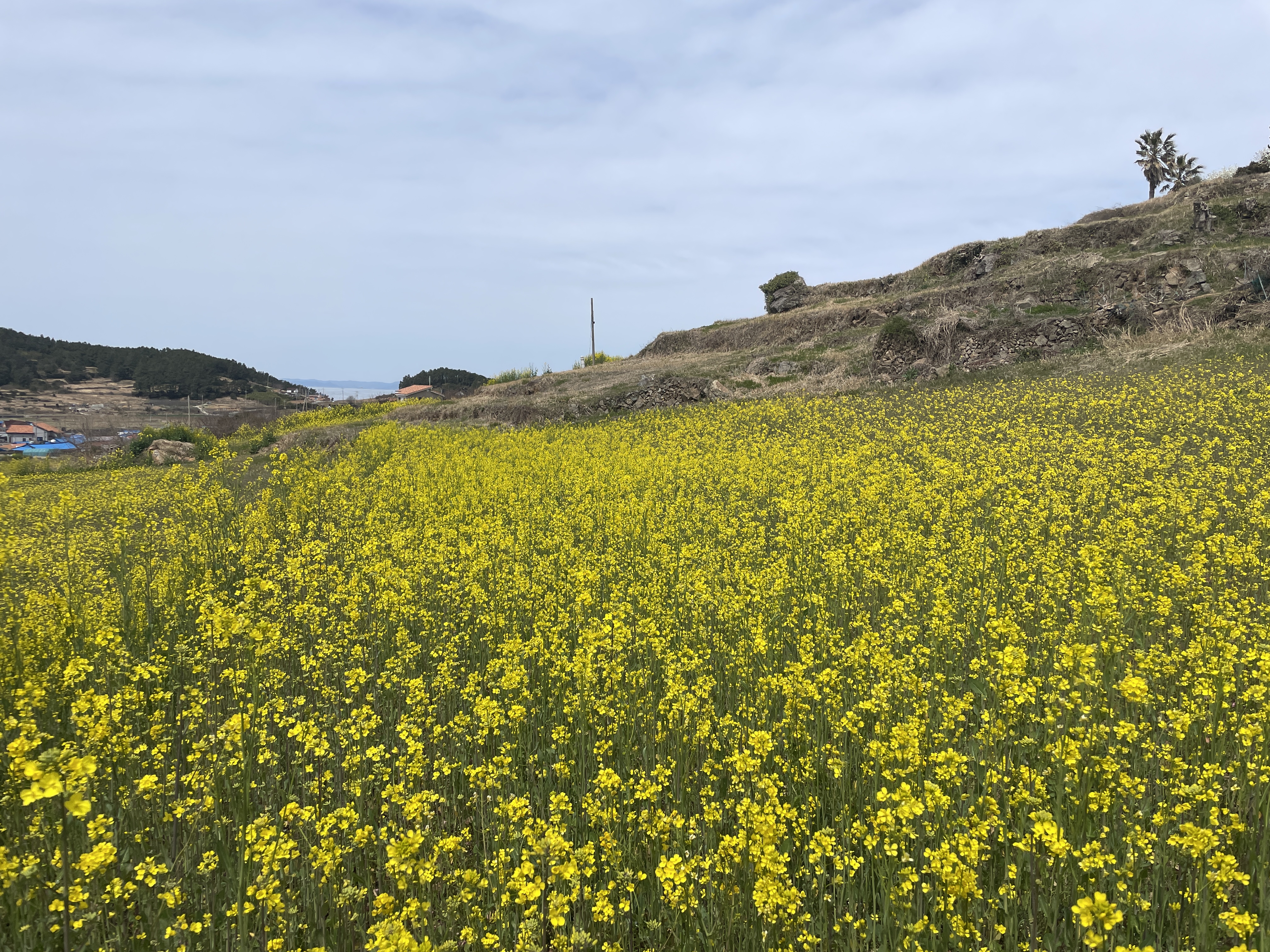 청산도의 상징, 슬로길. 그 중에서도 영화 서편제 촬영지로 유명한 당리마을에는 유채꽃이 한창이었어요. 아직 섬 전체가 노랗게 물들진 않았지만, 노란 꽃길이 펼쳐지는 풍경은 그 자체로 힐링이었습니다.