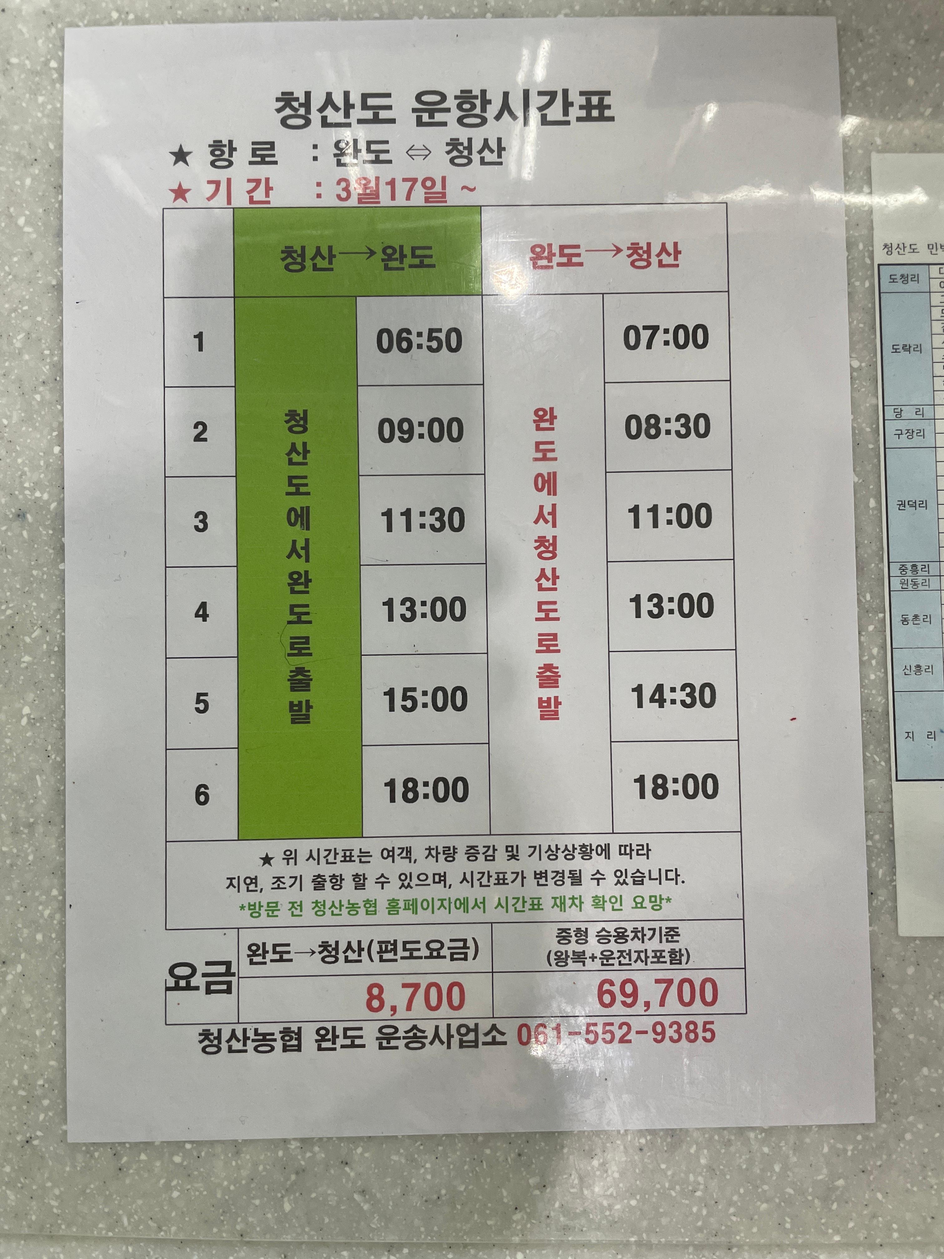 🚢 완도 → 청산도 배편 정보